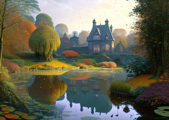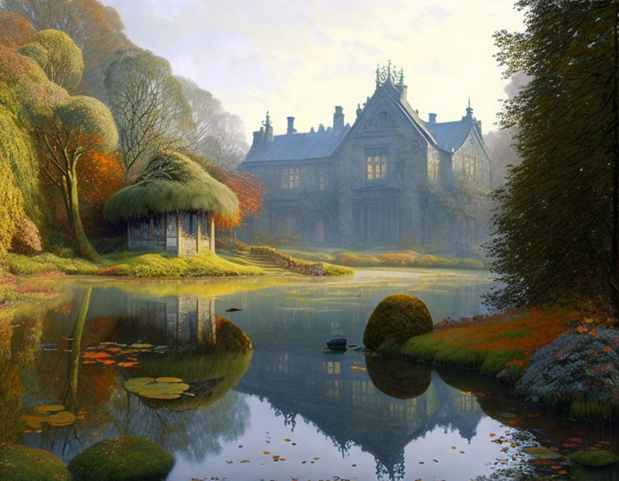 im Stil von John Atkinson Grimshaw, Spätherbst, nasser Pinseleffekt,