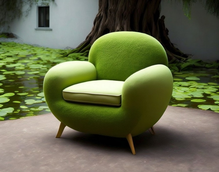 Ein Sessel, der wie ein Frosch aussieht.