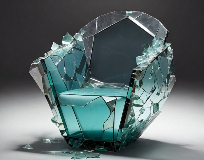 Ein Sessel aus zerbrochenem Glas