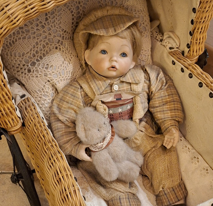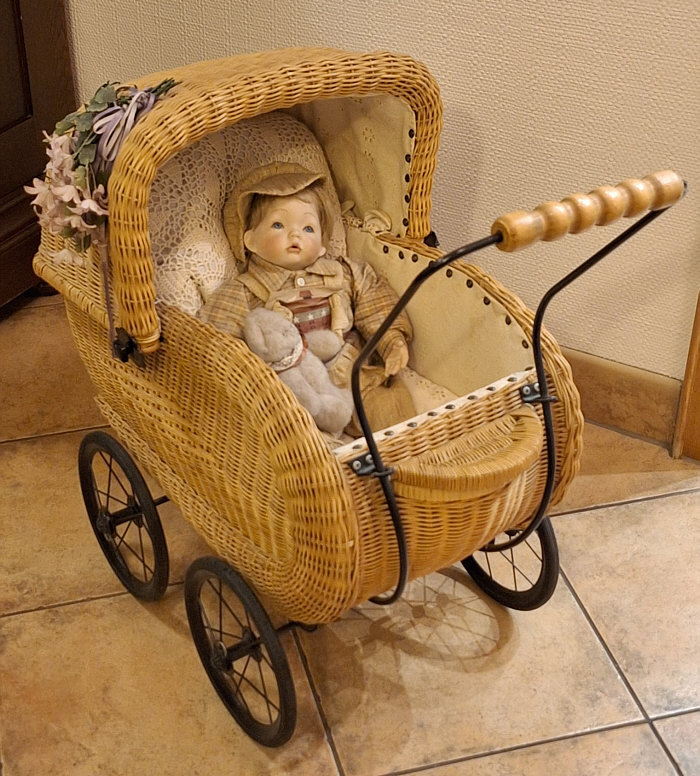 Aron steht bei mir in dem Puppenwagen gleich am Eingang in der