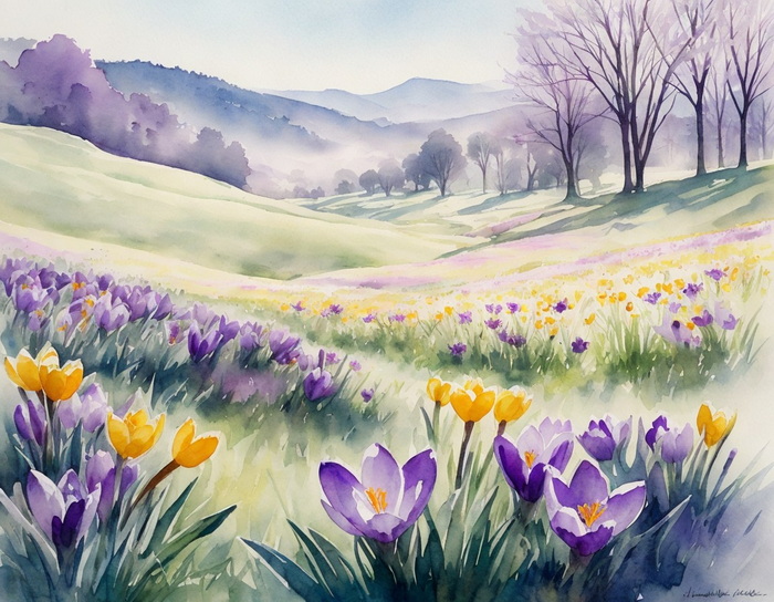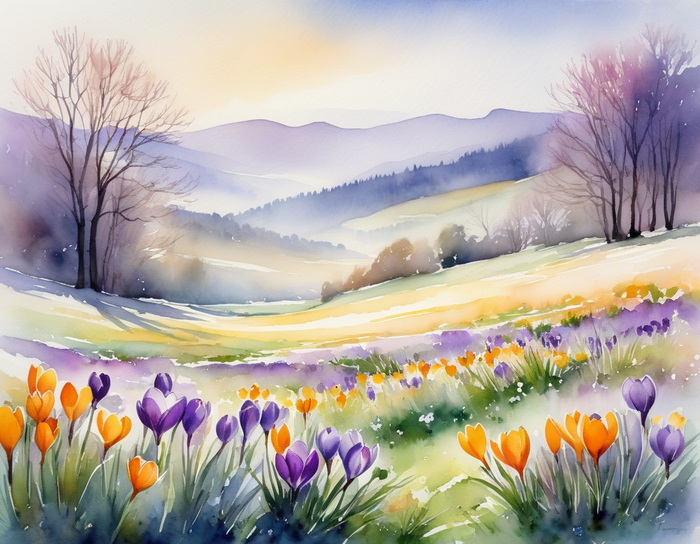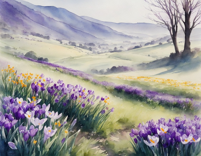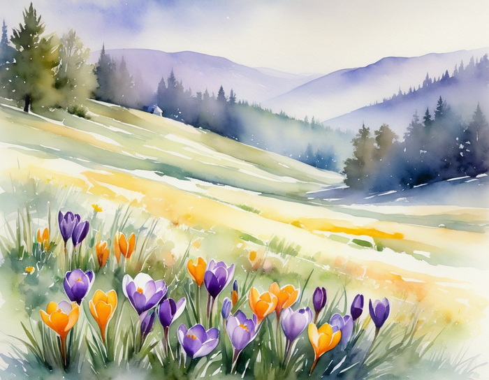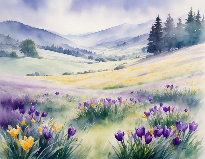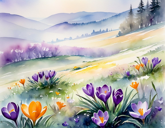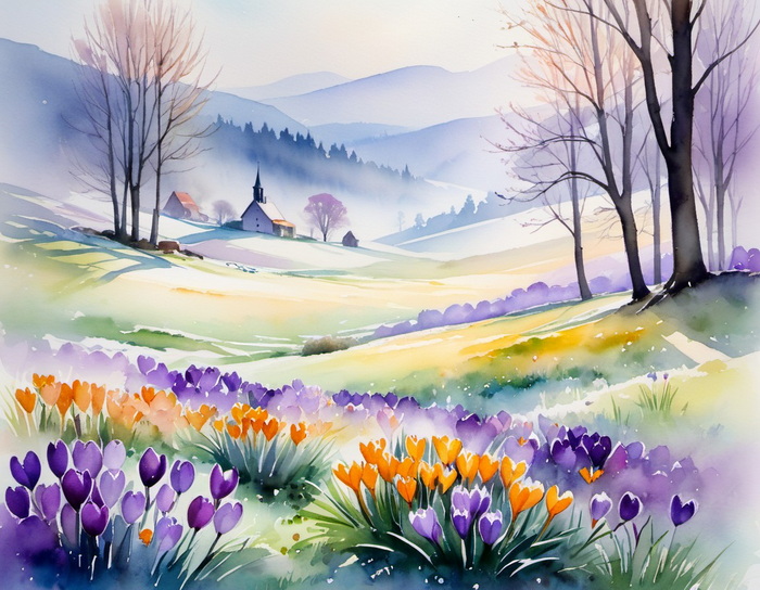 liegt über dem Tal ... auf der Wiese blühen einzelne Krokusse