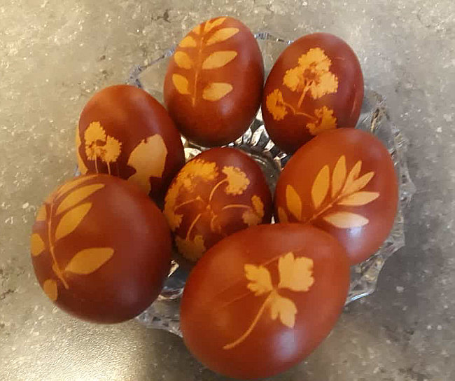 Onyxia hat Ostereier mit Zwiebelschalen gefärbt