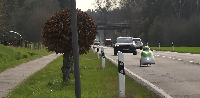 Fährt auf der Straße trotz wunderbarem Fahrradweg.