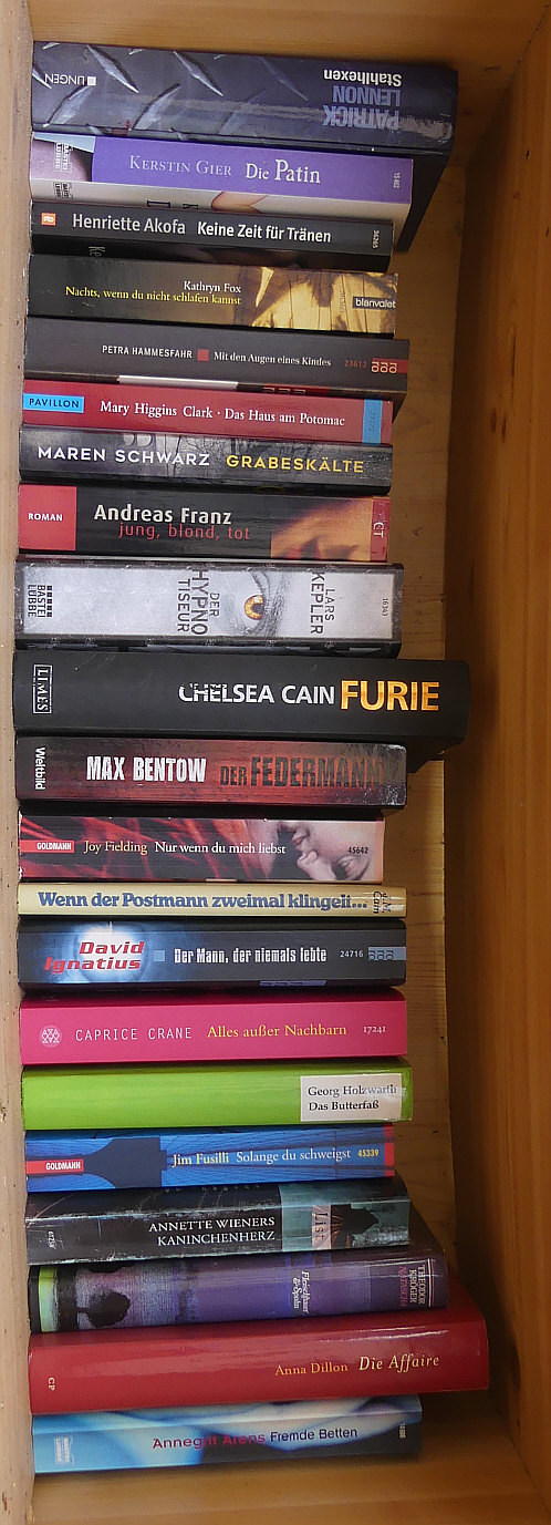 Die oberste Reihe von einem öffentlichen Bücherschrank: