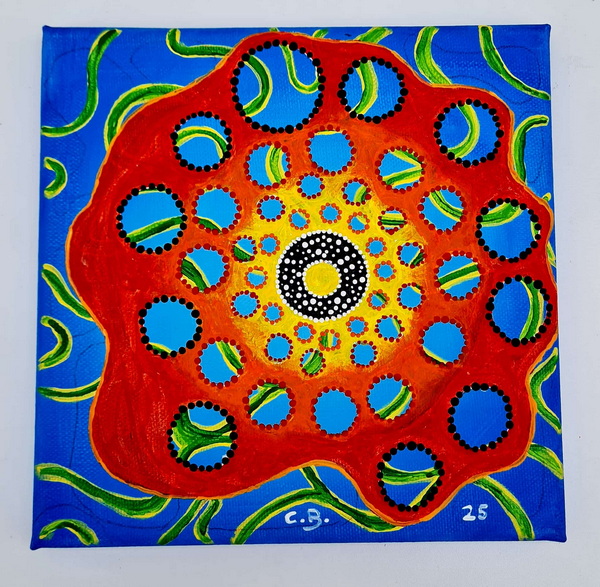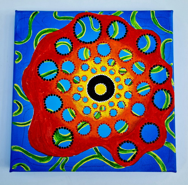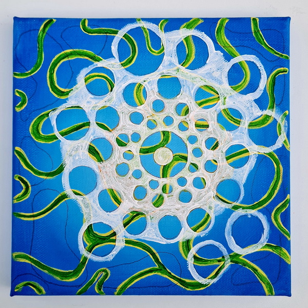 Nun die Mitte betonen und den Rand der Kreise mit Pünktchen