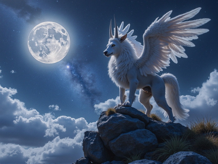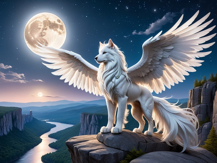 "Fantasywesen, wunderschön, mit großen Flügeln,