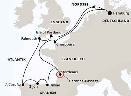 Kreuzfahrtimpressionen von Birgit W. ... heute: Die 53m hohe Hubbrücke Pont Jacques Chaban-Delmas ermöglich es, dass Kreuzfahrtschiffe in die Altstadt von Bordeaux einlaufen können. Die Betontürme sind 77 m hoch. [Kommentieren]