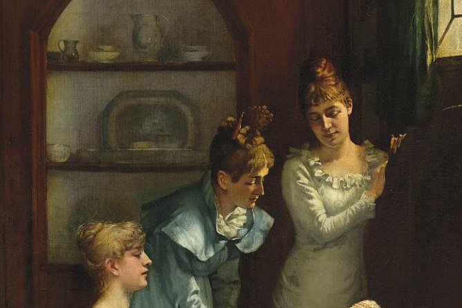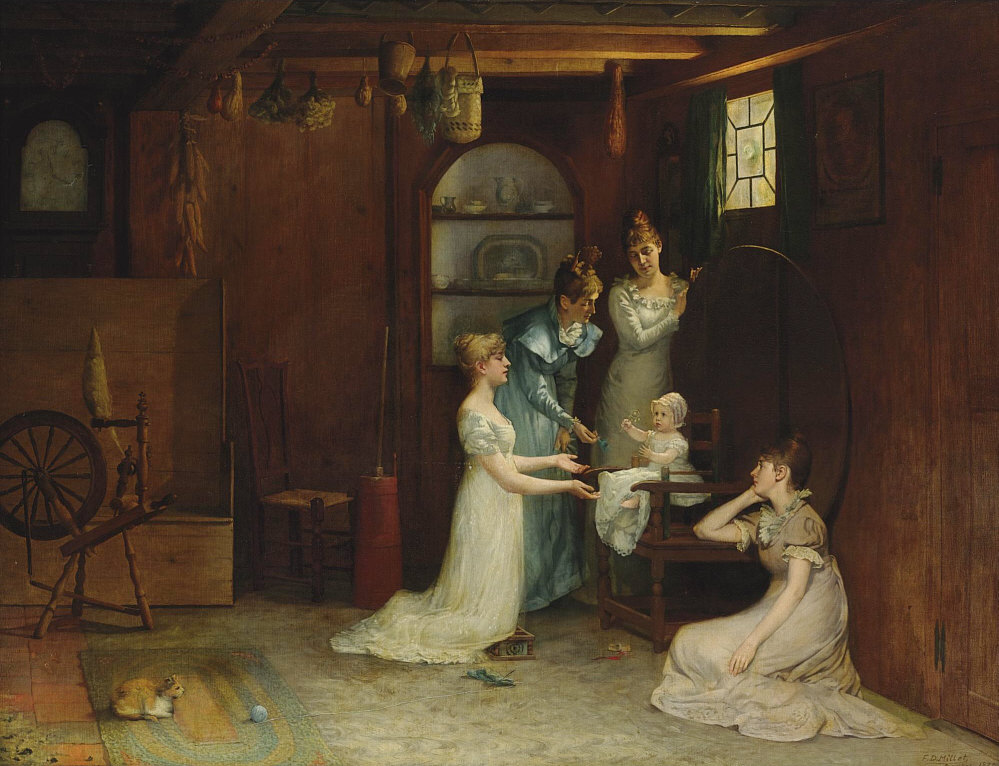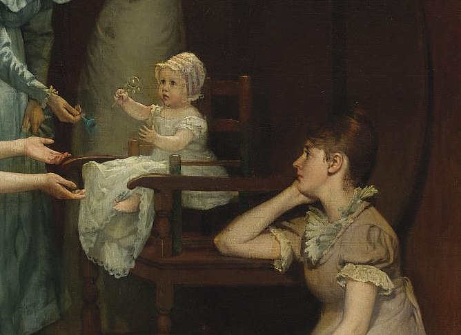 Maler: Francis Davis Millet (USA, 1846-1912) - "mit dem Baby spielen" ... 1880 gemalt, Öl auf Leinwand, 102 x 132 cm. Zwei Ausschnitte: [Kommentieren]