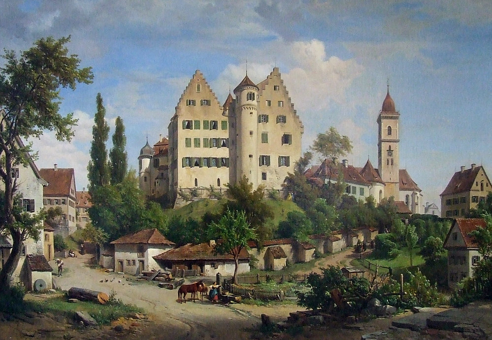 Maler: Albert Emil Kirchner (Deutschland,, 1813-1885), Schloss und Stadt Aulendorf (Oberschwaben). [Kommentieren]