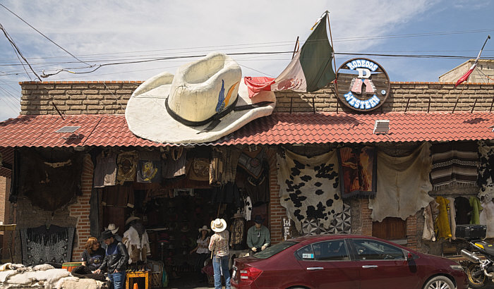 Upps ... was wer wie wo sind wir heute ? Wir schauen heute zur Decke eines "Rodeos and Western"-Laden in Tezontepec in Mexiko. Von außen sieht der Laden so aus: [Kommentieren]