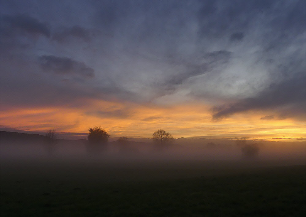 Die Sonne hat den Himmel angemalt ... die ersten Nebelschwaden sind schon da.
