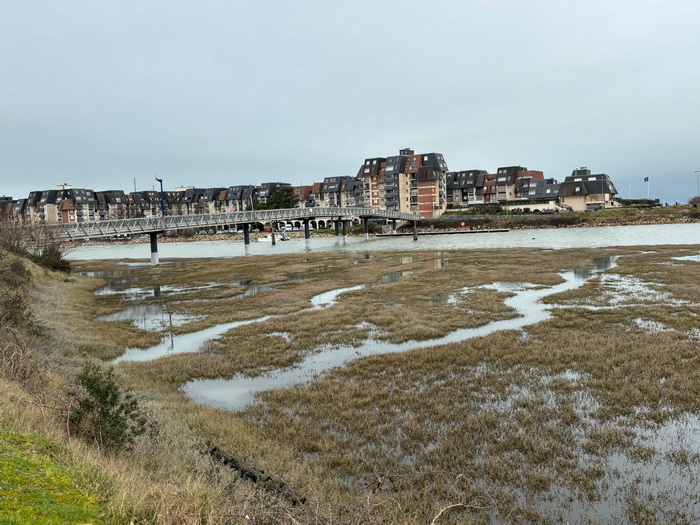Es gibt auch eine Fußgängerbrücke über den Fluss Dives nach Cabourg.