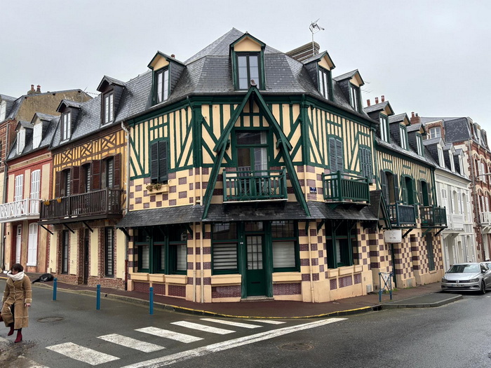 Im Ort wieder Baukunst, die Dächer an der Fassade sind besonders.