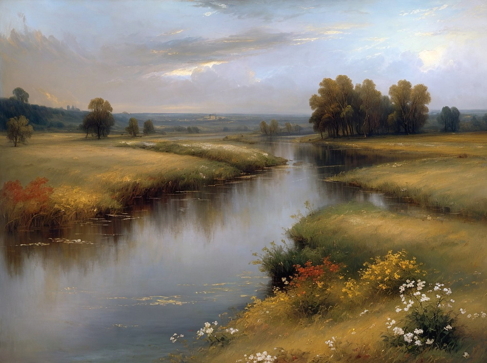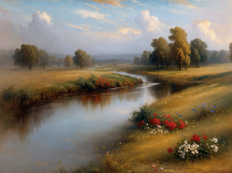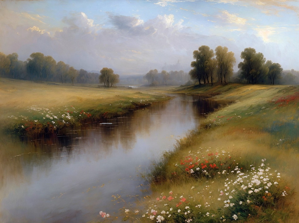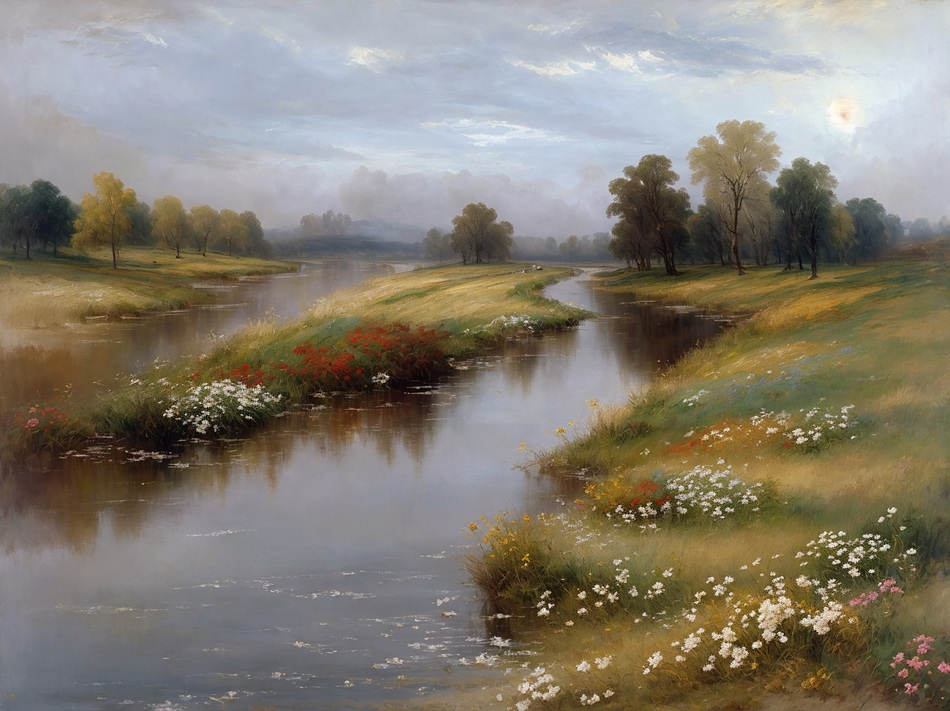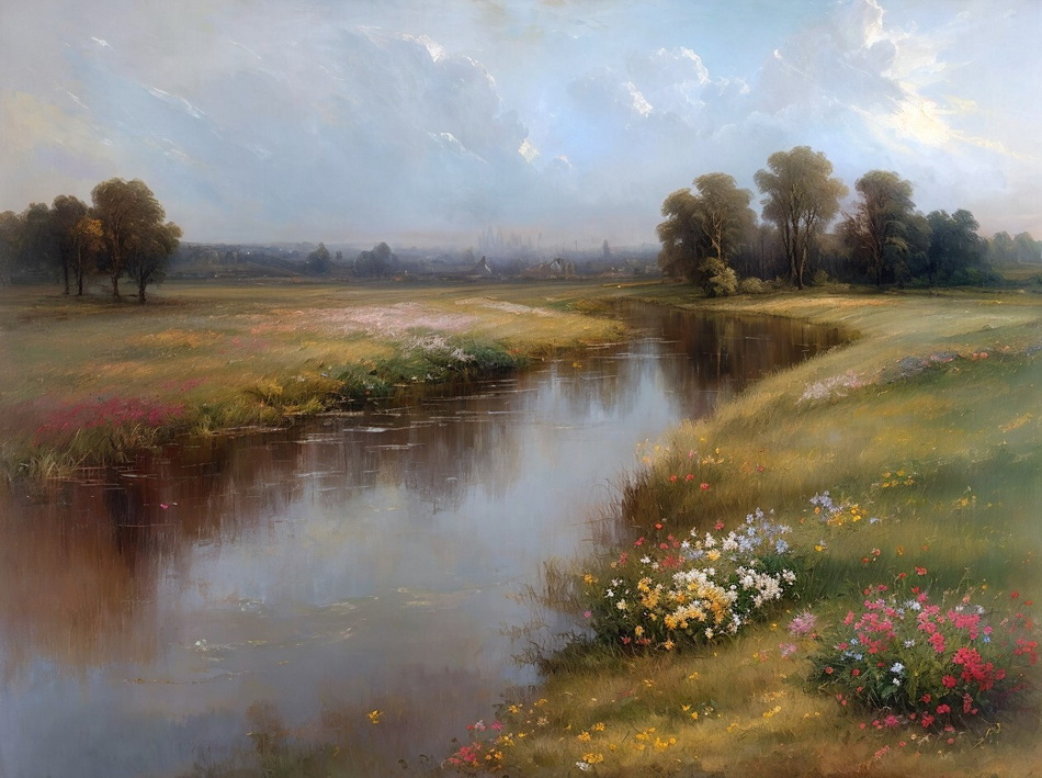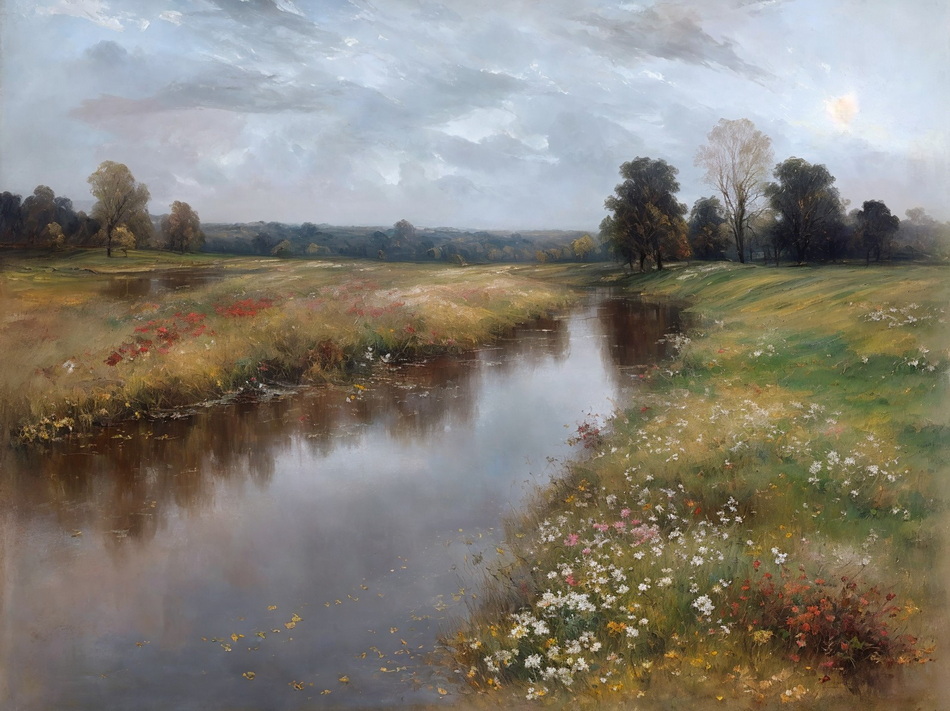 romantisches Ölgemälde mit wenigen Farben, Stil und Details wie im