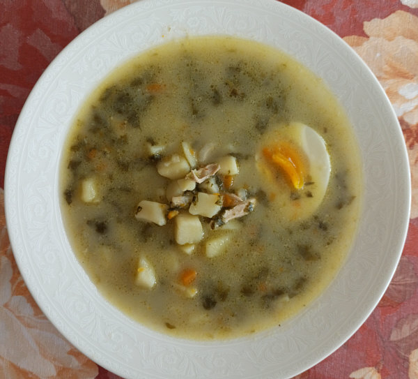 Foto: Aw58 - Lizenz cc by nc nd 3.0 schmeckts ? Sauerampfersuppe mit Kartoffeln und Ei. Mal probieren ? [Kommentieren]