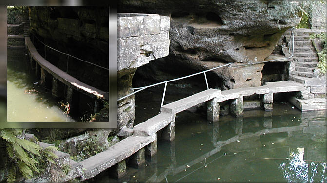 schmale Betonstege, über den links oben sind wir gegangen bis zur Mitte