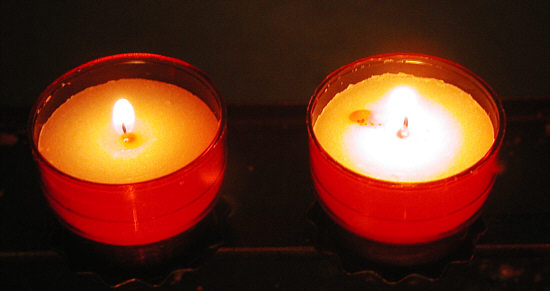 Wir zünden beide eine Kerze an und wünschen, dass sie für unsere gemeinsame Zukunft Licht sein möge ... Wir halten uns fest ... ... und gehen wieder nach draussen