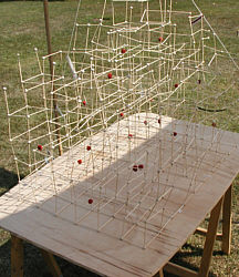 hängende Himbeeren in filigranem Geflecht, ziemlich einsturzgefährdet