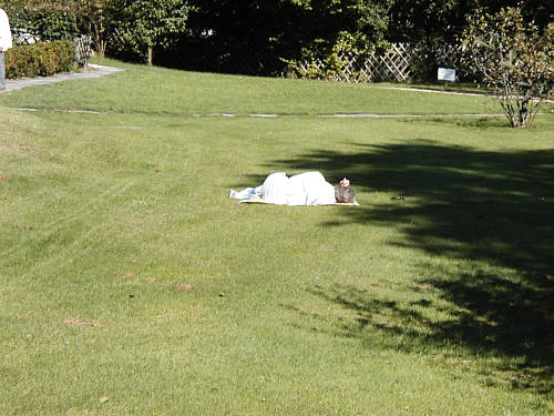 Dame auf dem Rasen ... steht auch auf und geht zu dem Herrn ... und als
