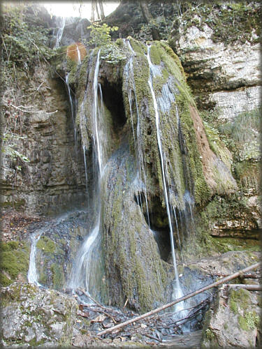 ja, sowas lieben wir ... ein Wasserfall, der zu Tale rauscht ... die Wanderung fängt an, Spaß zu machen ... der Weg wird nun ganz schmal, immer noch am Ufer entlang, mitten durch ...