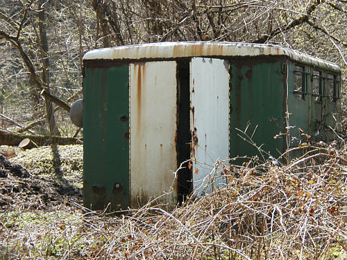 Da rostet ein alter ... mmh, was ist ... Bauwagen ?? ... auf jeden Fall rostet er dahin. Natürlich habe ich auch da reinfotografiert, aber das Bild gibt nun wirklich nichts her, er ist leer, nur etwas Laub auf dem Boden. Darum weiter des Weges ...