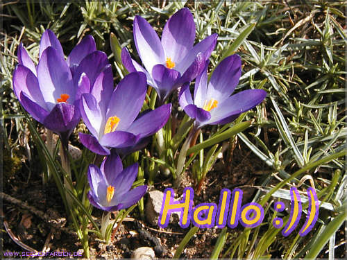 ![]() heute ohne viele weitere (Vor)worte gleich zu meinen Sonntagsrubriken, dafür steht dann dort mehr Text ;). Bilder der Woche: floral oder schwarz-weiss ... Interview der Woche: Ein Sinn des Interviews ist, Menschen bekannter Seiten etwas von der privaten Seite zu beleuchten. Ein anderer ist, Menschen, die noch nicht so im Rampenlicht stehen, aber genauso interessante Persönlichkeiten sind, vorzustellen. Heute hat sich die Ulla meinen Fragen gestellt. Ich hab mich sehr gefreut, dass sie zum Interview bereit war, denn der einzige Kontakt, den ich mit ihr vor der Interviewanfrage hatte, war ein Gästebucheintrag. Dann folgte sogleich mein spontaner Entschluss, die Dame um die Antworten auf die Fragen zu bitten, und herausgekommen ist ein tolles Interview. Ich empfehle auch, einen Abstecher auf die Homepage von Ulla zu machen :)). Gedicht der Woche: auch hier die Empfehlung, auf eine HP weiterzusurfen. Denn das Dachstuebchen ist einen Besuch wert. Vorher natürlich mein Gedicht der Woche lesen ;). Ein weiteres Gedicht von Ixmasyc war ebenfalls in der Auswahl, Gedicht der Woche zu sein: Man sagte er käme vom Mars sie von der Venus. Sie glaubten fest daran und verstanden sich nicht. Zimmer mit Aussicht: die erste Dame hat den Urlaub um eine Woche verlängert (man kann sich ja nicht richtig erholen, wenn man nur eine halbe Stunde von zuhause entfernt Urlaub macht), die zweite Dame wollte da bestimmt immer schon mal hin und damit die beiden nicht ganz allein sind, gibt's noch einen männlichen Überraschungsgast :). HP der Woche: eine Homepage, auf der man gern verweilt und erholt oder lächelnd zurückkehrt und vielleicht den einen oder anderen Satz zum Nachdenken mitgebracht hat. und es gibt neue Zitate :) [ ] -- das Bild am Sonntag hab' ich bei einem Spaziergang vor ein paar Tagen selbst fotografiert. ![]() [ Krokus in Nahaufnahme ] [ ] -- Wort-des-Tages (aus meiner Mailingliste): Gesellschaftsspiele |