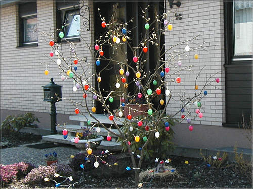 das sind Ostereier die kann man auch nicht essen aber man kann sie an einen Baum hängen und dort hängen sie dann eine Woche nach Ostern immer noch weil sie so schön sind ja, eine Woche nach Ostern ... ;) weiter