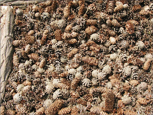 unter den Füssen: Tannenzapfen wir fühlen: uns beschissen Kommentar des linken Fusses: ich schliesse mich meinem Vorredner an ... wir singen: nicht mehr ... barfuß weiter