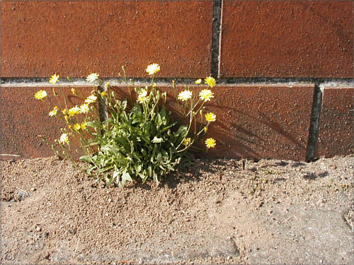 Nicht nur eine Mauer ... ... sondern der immer wieder tolle Beweis, welche Kraft die Natur hat. Eine blühende Pflanze hat sich einen kleinen Platz von der Zivilisation zurückerobert. zurück