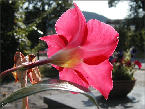 Ja, es ist eine Blume ... Sie steht auf einer Grabplatte und ich habe sie von unten gegen das Licht fotografiert ... zurück