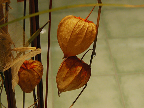 Lampionpflanzen ... auf den Fliessen ist wirklich Wasser, auch wenns hier nicht so rüberkommt ... und nun das schönste, die Lampe ... mit diesem Licht ...