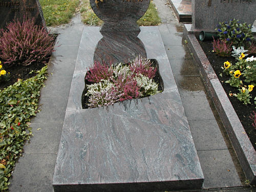 würden auf der Grabplatte sitzen und uns die neue Bepflanzung mal