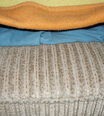 das Blaue identifizieren wir nun als das Oberteil meines Schlafanzugs und wir sehen, dass zwischen Teppich und Schlafanzug Platz ist ... ob da auch etwas drunter ist ? Schauen wir mal nach ...
