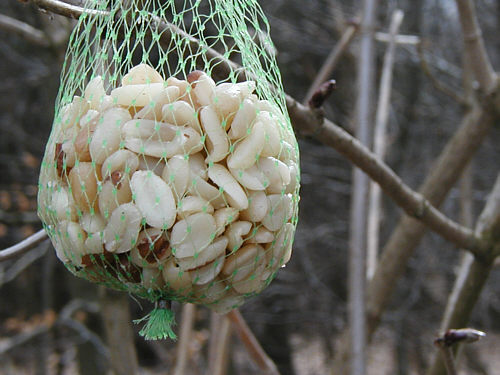 "was hängt denn da ?" Da hat doch jemand wirklich mitten im Wald Vogelfutter aufgehängt. zurück zum ersten Bild