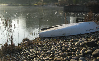 Ein Dezembertag mit Reifrosen und einem Winterschlafboot: