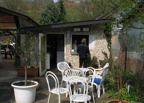 ... und landen im Innenhof des Eiscafes.
