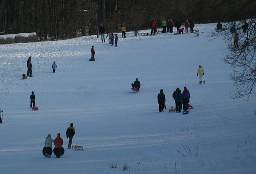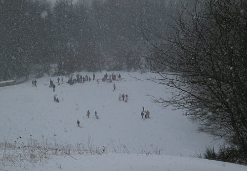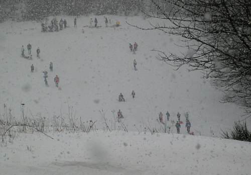 Was den Menschen nichts ausmachte, die rodelten munter bergab.