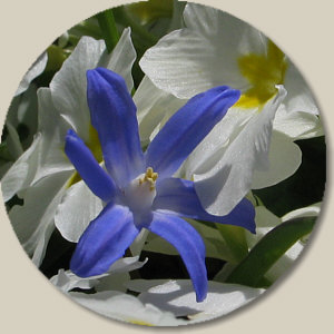 wo und wie diese blaue Blüte zwischen die weißen gekommen ist.