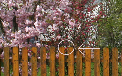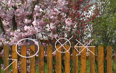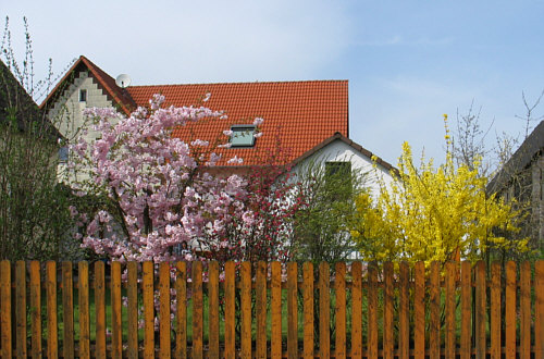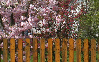 Holzzaun und Blüten ... hier kommt es auf die Fotografierposition an.