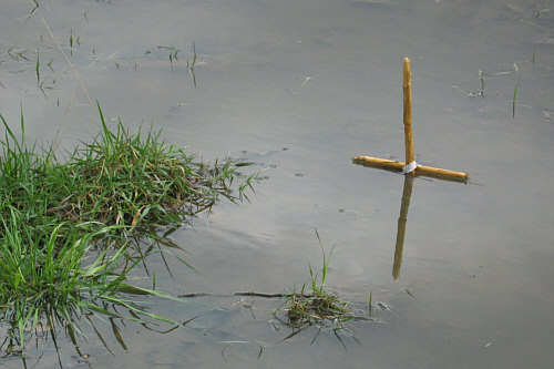 Ein Kreuz, das erst durch die Wasserspiegelung eins wird.