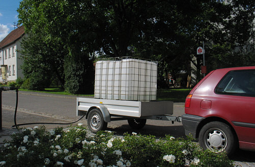 ... der den Dorfbrunnen anzapft, seinen Wasserbehälter füllt,