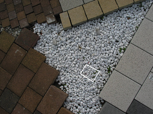 Das kleine rote Blütenblatt, die grünen Blätter.