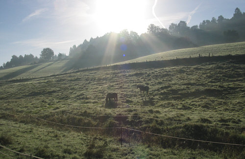 ... und da waren es Pferde, die im letzten Rest Morgennebel,