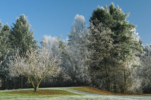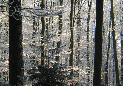 Eine sich auflösende Raureiflandschaft, denn die Sonne kam so langsam.