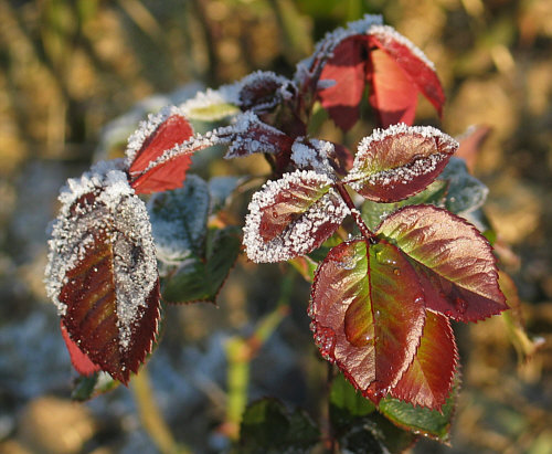 Auch an diesem Tag fotografiert: Rosenblätter im Winter: