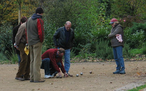 Menschen beim Boule-Spiel.