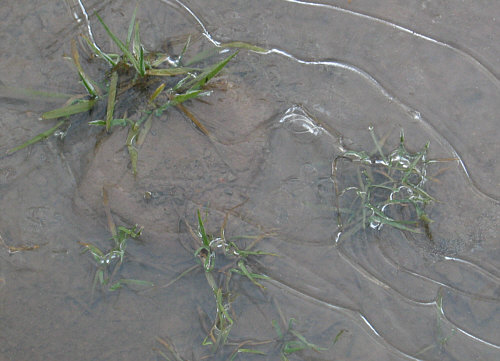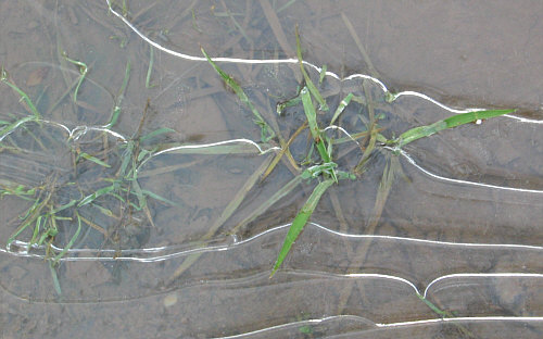 Diese zarten grünen Halme, die aus dem Eis ragen,