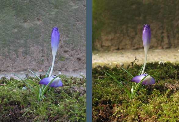 Das nächste Bild sind zwei Krokusse, das eine Bild eine halbe Stunde