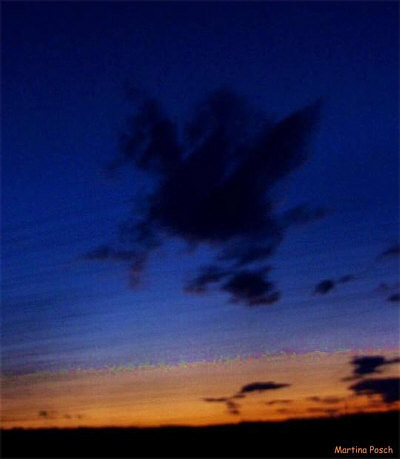 Normalerweise ist es ja so, dass man oft erst die anderen Kommentare liest und dann erst selbst kommentiert. Heute bitte ich Euch, "zuerst" zu kommentieren und dann erst zu lesen, damit Ihr Euch nicht von den anderen Ideen beeinflussen lässt und so die Spannung des heutigen Themas bewahrt wird. Es geht heute um die Interpretation eines Bildes, das mir Martina geschickt hat (danke :)) ). Martina hat für dieses Bild einen Namen und auch weiß sehr klar, was ich darin erkenne. Doch ich weiß, dass jeder Dinge anders sieht. Um dieses Bild geht es: ![]() Lasst es einfach auf Euch wirken und erzählt mir, was da die Wolken an den Himmel gemalt haben. Danke Euch jetzt schon :)) Tageslink: der Bäuerinnentreff -- Mein Grüße gehen heute nach Lebus an der Oder und an alle, deren Lieblingsfarbe blau ist. -- Wunderkiste ![]() Lichtblick -- zurück zur Kalenderblatt-Hauptseite Kalenderblatt-Archiv |