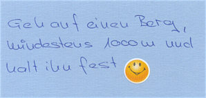 Manchmal sollte man nicht zu viel reden oder lesen sondern einfach nur lachen Und so beginnen wir diese Woche mit vier genial lustigen Links (bitte Lautsprecher einschalten): Opera Baby Pee Baby Tiny Bubbles Mommys Kiss Viel Spaß und Euch Allen einen guten Start in diese Woche :)) -- meine neue Monatsaufgabe von *lein ist übrigens: ![]() Aber Sternlein hat gesagt, ich dürfe warten, bis gutes Wetter ist :). -- Mein Grüße gehen heute nach Fulda und an alle, die gerne lachen :). -- Update auf Seelenfarben: es gibt neue Desktopmotive, darunter auch drei selbst fotografierte Frühlingsmotive. Zu Erklärung, es scheinen nicht alle zu wissen, die meisten meiner Desktopmotive sind von Foto-CDs, aber sind auch immer wieder eigene dabei. -- Das Desktopmotiv des Tages macht "keine" Pause, außer heute, ab demnächst gibts hier was Neues, aber auch für den Desktop :). -- Wunderkiste ![]() Lichtblick -- zurück zur Kalenderblatt-Hauptseite Kalenderblatt-Archiv |